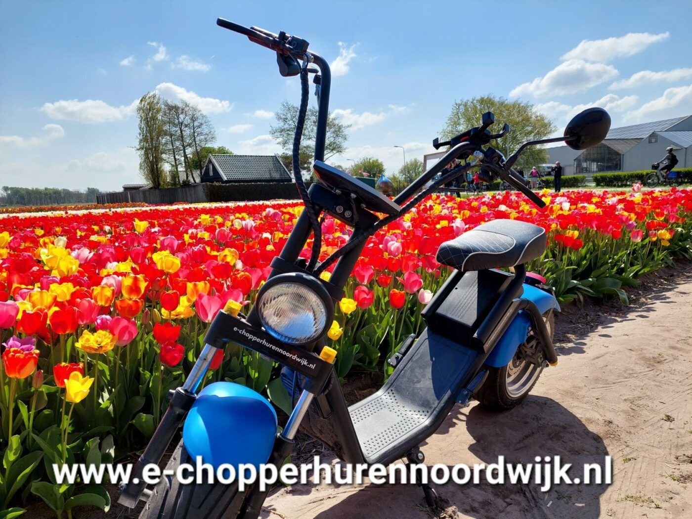 De leukste manier om de Bollenstreek te ontdekken is uiteraard op de E-bike, E-scooter, Elektrische step, FatBike, tandem, E-TukTuk of met de E-chopper.